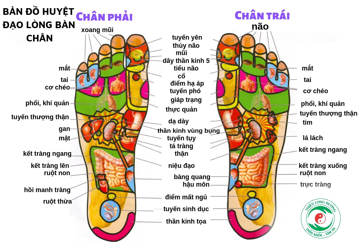Theo các kiến thức về đông y thì dưới bàn chân có các huyệt đạo ánh xạ lên các cơ quan trong cơ thể. Nếu biết cách bấm huyệt và massage đúng vị trí sẽ có tác dụng giảm đau, chữa bệnh mang lại kết quả tích cực. Cụ thể là: